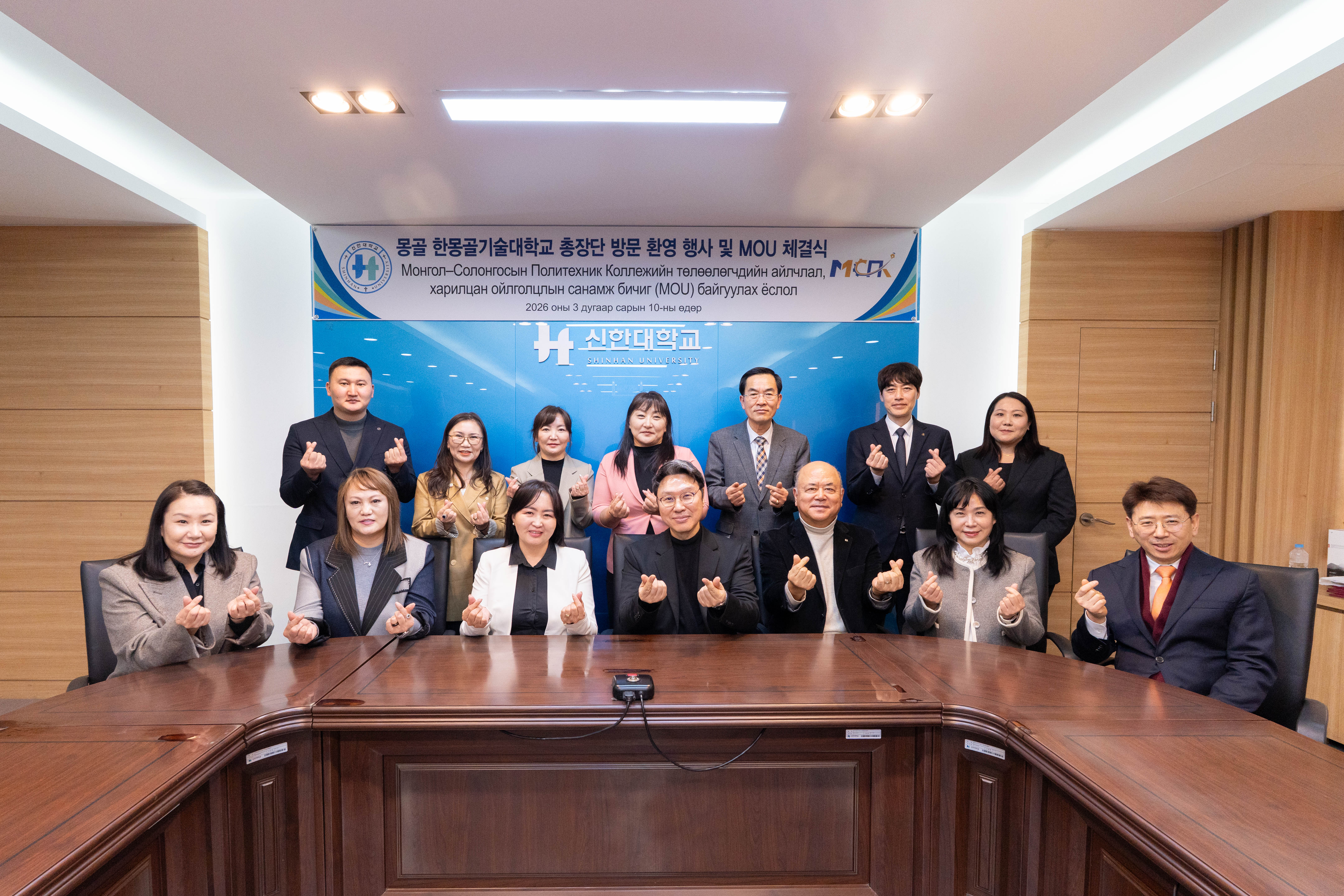 신한대학교(총장 강성종)는 국제처는 2026310일 본교 믿음관 세미나4실에서 몽골 한몽골기술대학교(Mongolia-Korean Polytechnic College, 이하 MKPC) 총장단을 초청하여 양교 주요 보직자들이 참석한 가운데 국제교류 협력 강화를 위한 업무협약(MOU)을 재체결했다.