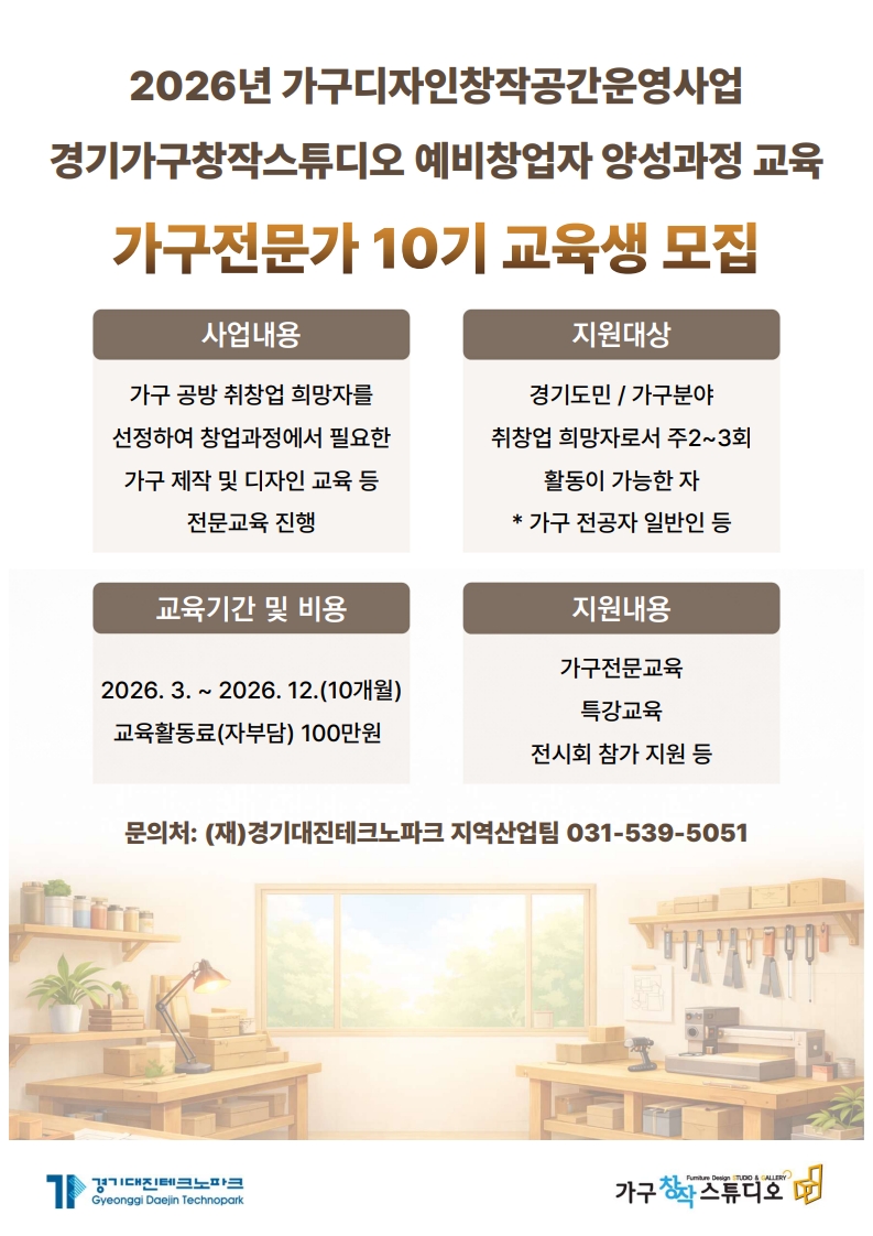 2026년「가구디자인창작공간운영사업」예비창업자 양성과정(가구전문가 10기) 교육생 모집